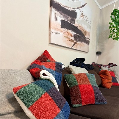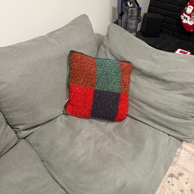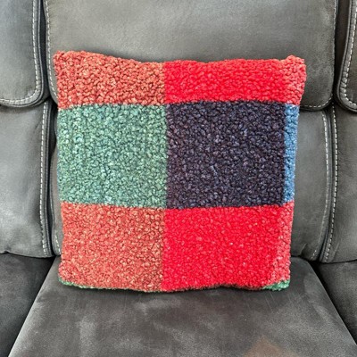 [This review was collected as part of a promotion.] I am so happy with this Sherpa like fluffy pillow. It is the perfect choice for anyone looking for an understated holiday accent. While it features classic Christmas colors like red and green in a cool color-block pattern, it doesn’t scream “Christmas”. The fabric itself is incredibly soft with a cozy Sherpa like texture. I love that the back is white which keeps the look fresh and makes it more versatile because you can always flip the pillow if you are sick of the colors. This pillow adds just the right amount of festive warmth to my couch without being over the top!