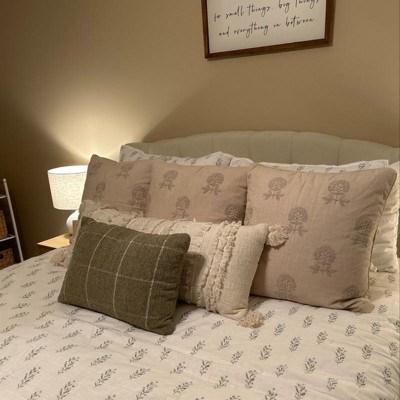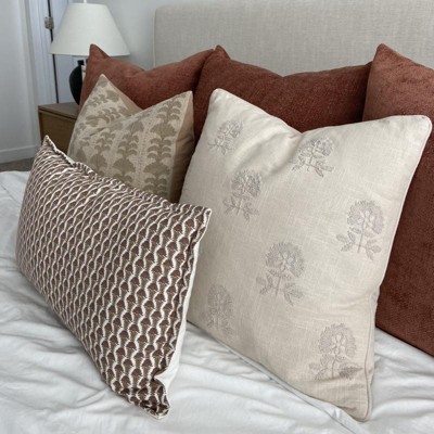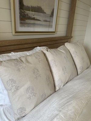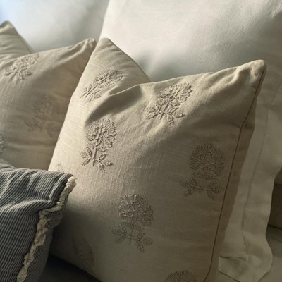 Square Embroidered Floral Decorative Throw Pillow Light Beige - Threshold™ designed with Studio McGee: Cotton Weave, Indoor Use, Hidden Zipper