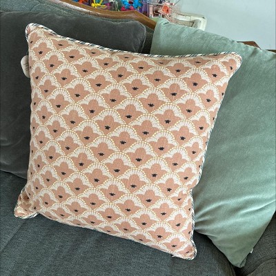 Add an amazing geo pattern to your home decor with the Square Geo Pattern with Striped Piping from Threshold™ Design with Studio McGee. Covered with a geometric print, this peach square pillow comes complete with a striped piping to make a beautiful addition to your space. The hidden zipper helps create a finished look, while the removable cover allows for easy maintenance. This printed pillow is made with cotton-linen blend fabric and polyester filling, this printed pillow feels soft and comfortable as you rest.