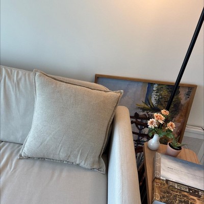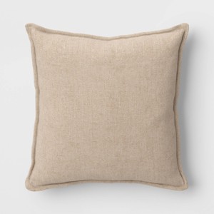 This Square Linen Throw Pillow with Flange from Threshold™ makes a cozy-chic addition to your decor. This 18-inch square pillow showcases a textured neutral beige surface with matching flange, adding depth and dimension to your space. Featuring a soft linen-cotton blend exterior and a well-filled interior, this decorative throw pillow adds plenty of comfort and style to your sofa, couch, bench or bed.