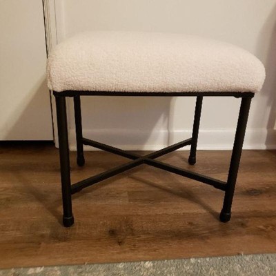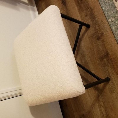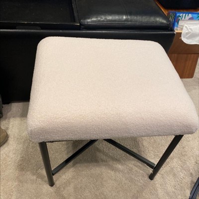 Square Metal Ottoman Cream Faux Sheepskin - HomePop: Matte Black Base, Living Room Seating