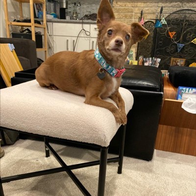 The modern design of this stool is beautiful and the chair was easy to put together. I felt that the stool top was sturdier than the metal legs. The stool top with the cushion felt heavier than the legs, but I suppose that is a good thing because the seat is very padded and comfortable to sit in! I am using it as a vanity stool in my bathroom. One of the little plastic covers on the feet came off upon opening the box, but I got some rubber feet from Amazon for $3 and that solved the problem! Overall, this stool is super cute and exactly what I was looking for!