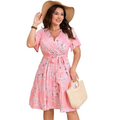 - Square Neck Full Body Lotus Leaf Sleeve Maternity Dress 7890-2#pink digital printing,2XL