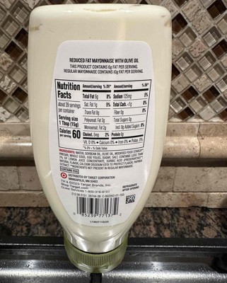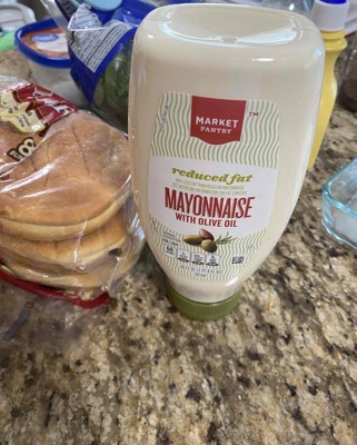 This Squeeze Reduced Fat Mayonnaise with Olive Oil from Market Pantry™ adds a new twist of flavor to your favorite foods. This 20-ounce squeeze reduced-fat mayonnaise with olive oil has a savory flavor that complements a wide range of foods. You can spread it on bread for a delicious sandwich, add it to tuna salad, or use it as a base for custom dips and salad dressings.