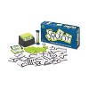 Using any combination of the 72 cards with various shapes on them (such as a cross, various sized circles, wavy lines, etc...), players take turns trying to convey one of the words on a "squint" card. The words have varying degrees of difficulty, from one to three points. Any of the non-building players can guess what the word is. If a player guesses the word before the timer runs out, both the "builder" and guesser receive points.