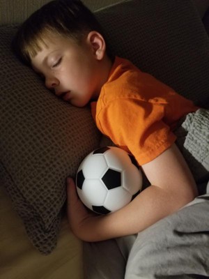 So fantastic for my soccer fan! I love how this has no plugs or batteries. It comes with a charger and it lasted my son a few nights before needing a re-charge. With a light tap it changes colors, and it is squishy for added fun. It is so portable and goes with us in the camper and cabin. Wish I knew about this sooner!