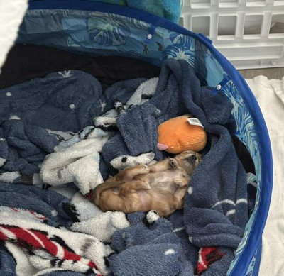 My daughter’s mini doodle knocked up my chihuahua.. 60 days later she has a beautiful precious little chi-poo!! In an effort to make her feel less alone I bought these little squishmallows as a stand in for litter mates.. & it worked!!! She cuddles with them, plays, & wrestles them!!