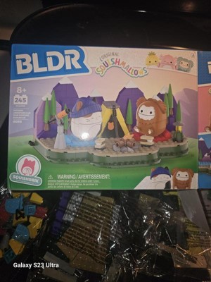 - MEASUREMENTS This 245-piece BLDR Squishmallows Camping Adventure set measures 8 inches x 5 inches x 3.7 inches, while the Cam and Benny Squishmallows buildable figures measure 2 inches long when fully assembled