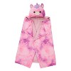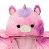 This Lola the Unicorn hooded blanket is the perfect addition to any Squishmallow collection. This tie dye unicorn serves as the perfect pillow-y head piece for when you just want to snuggle, while the super soft throw allows you to wrap entirely up in the comforter of your favorite Squishmallow friend.