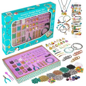 - INCLUDES: Assorted beads and alphabet beads, (15) Gem beads, (12) Enamel beads, (8) Specialty beads, (22) Charms, (3) Message bars, Elastic (12 yards), Mini pliers, (1) Pincer-spoon set, (2) Necklace Cords, (1) Bracelet Chain, (3) Chains, Wooden jewelry storage case, Instructions.