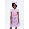 • Spotted pink and purple tulle ballerina skirt with taffeta lining; Dress-up cosplay design with 3D ears and horns on hood; Awesome screen print design; Comfortable hood lining; Cute and stylish flutter sleeves; Sparkly lurex elastic waistband; Pull on closure