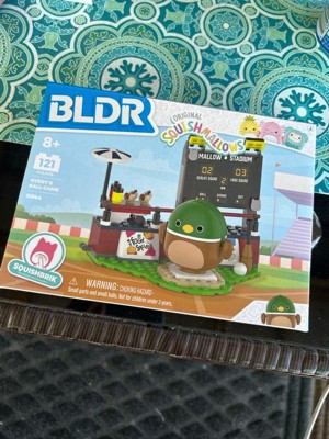 Take a trip to the ballpark with Avery! This first-of-its-kind Squishmallows buildable playset, modeled after a perfect day at the ballgame, features a ’Mallow Stadium scoreboard and hot dog stand. Play with or display the included Squishmallows buildable figure Avery—featuring a squishable belly powered by SquishBrik by Original Squishmallows—hitting home runs, adding mustard to his hot dog, or wherever your imagination takes you! BLDR bricks are compatible with all major construction brands, ensuring endless possibilities for creativity. Join the Squishmallows Squad with this exciting playset—perfect for kids and fans who love to build, imagine, and play!