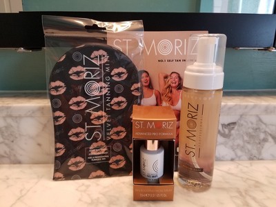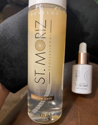 [This review was collected as part of a promotion.] I am very happy to have discovered this St. Moriz Professional Medium Dark Clear Tanning Mousse & St. Moriz Advanced Pro Radiant Glow Tan-boosting Facial Serum. They work great. So easy to apply, and keeps my skin with a nice healthy glow. Comes with a nice glove to apply, and washes off well. I would recommend.