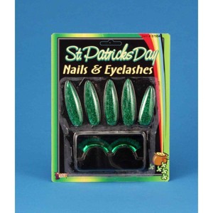 St. Patrick's Green Costume Press-On Nails & Green False Eyelashes