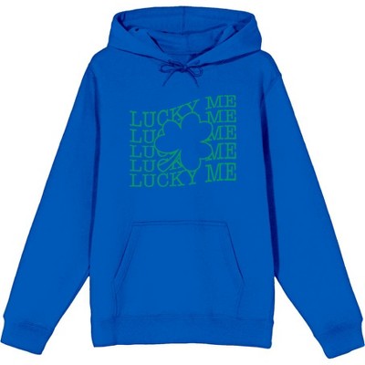 St Pats Luck Clover Long Sleeve Adult Hooded Sweatshirt -XXL-Blue