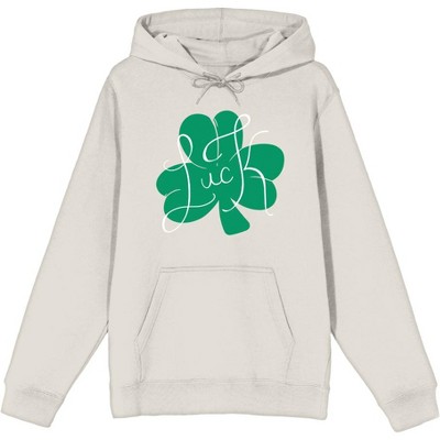 St Pats Lucky Me Long Sleeve Adult Hooded Sweatshirt-Small-Cream