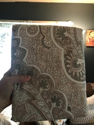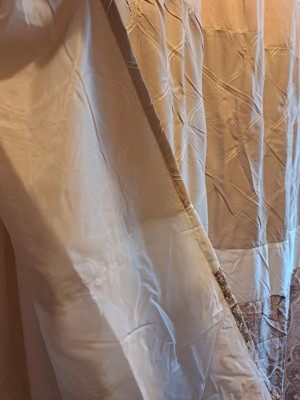 [This review was collected as part of a promotion.] My expectations were a bit different from the actual product, but I am not disappointed at all. The intricate printed damask design is very attractive and the embroidery is a nice detail. The inner liner drapes nicely.
