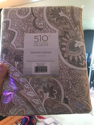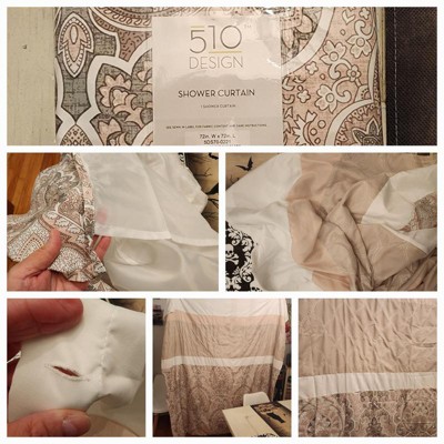 [This review was collected as part of a promotion.] This shower curtain I received to test is very feminine and pretty. It is a lined shower curtain, and both the lining and exterior of the curtain, are soft and flows. It does wrinkle easily and can be thrown in the dryer to help remove the wrinkles upon arrival. My shower curtain arrived in pretty good condition. A couple threads to clip around the sewn shower curtain hook holes. This shower curtain does not have grommets. There was no chemical odor, stains, or tears to my curtain upon arrival. The brush tones are actually pretty neutral as well.