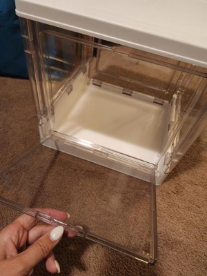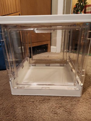 Easily organize your home with this Stackable Collapsible Cube with Doors from Brightroom™. This cube storage box is made from BPA-free material, features transparent doors to see what's inside, and opens from the front using a latch for easy accessibility. Featuring a stackable design for compact spaces, this white storage box is ideal for keeping your shoes, bags, linens, and more. Plus, it's collapsible with detachable doors for convenient storage and features spinner wheels for easy maneuverability.