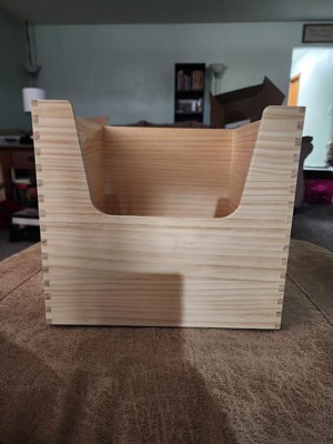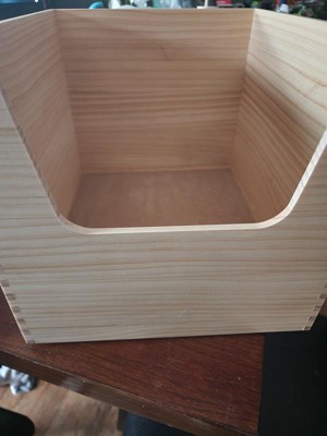 This wooden bin is very nice. The quality of it, was much better than I expected. The bin was made very nicely and doesn't look or feel cheap. The wood is unfinished, so one could easily stain or paint the bin to fit in with any decor. I like that these bins come in different sizes and can be stacked. I chose to go with a smaller size bin, so I can use it to store small items in my pantry or kitchen cupboard.