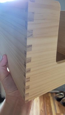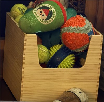 Great box to hold different items in your house. Well built and was great to put my dog toys that I have bought from Target. It is durable enough for when my dog is picking out toys to not break. Love that it won't give my dog slivers from the wood.