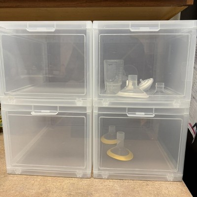I’m really gutted. I bought these for bottle/ pump storage and did a same day pickup at my local Target. Upon arriving home 2 of the 4 boxes are damaged. Really wanted to enjoy these! Pro: TONS of storage. Con: Extremely brittle plastic.