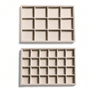 Stackable Velvet Jewelry Organizer Trays, Set of 2 Beige