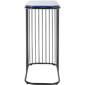 Translating modern metalcraft into glamorous contemporary decor, this Stafford Side Table is absolutely stunning. The astonishing asymmetry of its open black frame highlights Staffords striking silhouette, while a contrasting blue surface further enhances its artistic appeal.
