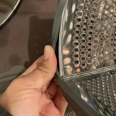 There’s a rubber seal at the bottom and food collects, especially when grating finer pieces. A lot of parts to clean up. I thought I’d like the collecting cup but it doesn’t help much. Next time I will get a simpler one piece grater.