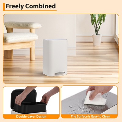 Stainless Steel Garbage Can with Lid, Rectangular Small Step Waste Bin with Foot Pedal