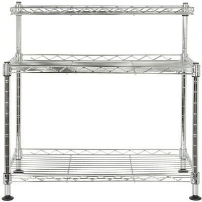 - This Chrome metal shelf is made of heavy steel, so it has extremely strong load-bearing capacity. The metal rack is covered with a powder coat finish that not only has a smooth finish, but also resists water, rust or corrosion. Placing the shelving unit in your kitchen or laundry room is no problem.