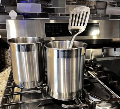 Stainless Steel Utensil Storage Container - Threshold™: Freestanding Kitchen Utensil Holder, Shiny Silver, 6.62" Height