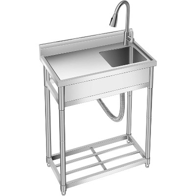 Stainless Steel Utility Sink Freestanding, 36x21 Inch Single Bowl Commercial Kitchen Sink with Countertop & Storage Shelf, Laundry Tub