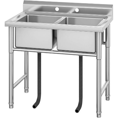 33"x18"x30" Stainless Steel Utility Sink, Freestanding Double Bowl, Commercial Sinks Kitchen Sink for Restaurant Laundry Room Bathroom Garage Garden