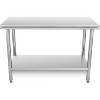 - ?️ Premium Stainless Steel Construction: Crafted with NSF-certified 201 stainless steel, this work table offers superior corrosion resistance and easy sanitation. The polished surface prevents contamination and withstands heavy daily use in commercial kitchens, garages, or workshops. Simply wipe clean for hygienic maintenance.