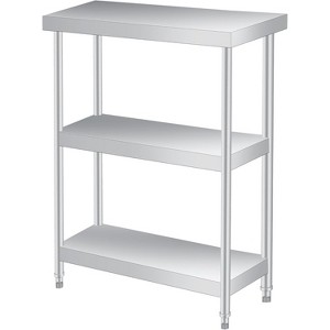 Stainless Steel Work Table with Lockable Casters, 3-Tier Commercial Kitchen Prep Table, Metal Utility Table