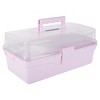 - The transparent top of the pink tool box allows you to easily spot items inside, and the 2 tiers of trays open up and out of the art bin storage box for full visibility