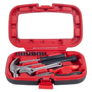 The Tool Boxes by Stalwart have everything you need for basic repairs or little emergencies around the house. This 15-piece tools set comes with a hammer, an adjustable wrench, pliers, and a screwdriver set with 11 different bits, making it the perfect addition to your dorm room or apartment essentials. The well-organized small tool box comes in a compact durable plastic carrying case that fits anywhere in your home, apartment, dorm room, garage, or even the car.
