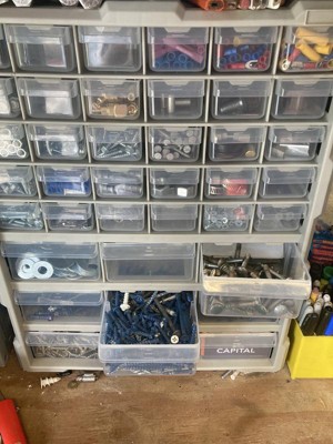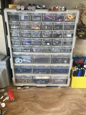 [This review was collected as part of a promotion.] I decided to try this out since I had so many containers of nuts, bolts, screws and so on. This organizer is just perfect! So many bins to put stuff in. I actually ran out of things to store in here before I ran out of bins. Makes my life a bit easier instead of looking though so many containers. Its all in one place. I decided to hang it on the wall and it is very simple to do.