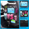 - This car storage solution protects the driver and passenger-side seatbacks from little footprints and fingermarks while keeping essentials organized