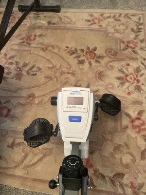 - CUSTOMIZE YOUR PERFORMANCE: Easy-to-reach tension dial allows you to change the resistance bike resistance level; Large LCD monitor tracks time, calories burned, speed, distance, and pulse; Turn the knob at the back to alter the angle of the Strength System arms