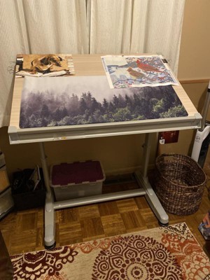 This adjustable drafting table is praised for its sturdy construction and ease of assembly, making it a great addition for artists and professionals alike. Guests appreciate the solid frame and the ability to adjust the tilt, although some express concerns about the textured surface affecting their work. Overall, it offers good value for the price, with a few minor design issues that can be easily addressed.