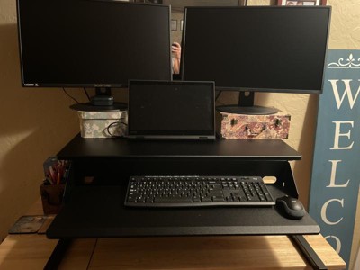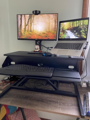 Stand Up Desk Store AirRise Pro Two Tier Standing Desk Converter Monitor Stand with Built-In Keyboard Tray (Black, 32" Wide)