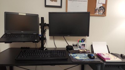 It was exactly what I needed and gave me so much more desk space without any damage to my walls or existing desk. I'm a renter so it's perfect for getting the monitor and laptop up without having to hang anything.