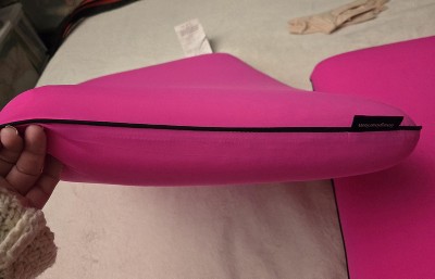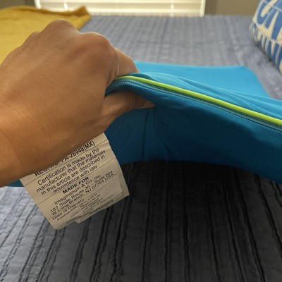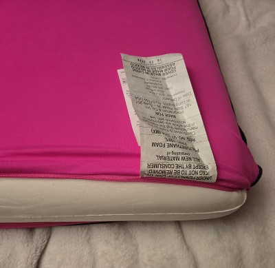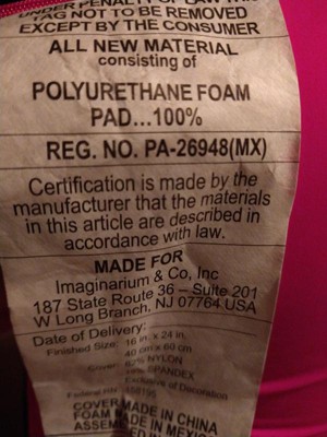 NOT Memory foam but %100 POLYURETHANE which is very harmful to human especially kids . It's sad that they make them in neon catching color for little ones . It can also trigger you asthma and allergies. I actually got it for $6 instead of the regular price they were in sale n I got 4 Because it says it's memory foam. They throw off a really bad ell and come to find out it's because of the polyurethane!! It's toxic. Buy at your own health risk . I also noticed that once out of the bag they have zero firmness it goes flat like you have nothing under. It feels like it's gone. Will be returning !!!