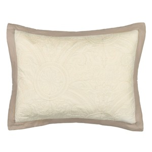 The Bensonhurst pillow sham from Vue coordinates with the Bensonhurst comforter set, bedspread and accessories bedding group. Pieces are constructed for comfort and durability. This standard sham features rich solid fabric framed on all sides with a coordinating solid. Standard sham measures 21 inches x 27 inches. Sold individually. 100% Polyester. Machine washable for easy care.