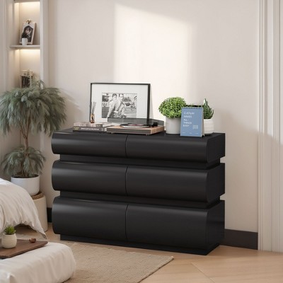 - MINIMALIST MODERN: Showcase a minimalist modern style for your bedroom with this black pull-less dresser. The sleek black dresser, handle-less slide drawers, crisp vertical and horizontal lines, and graceful curved lines are perfect for your home's theme.