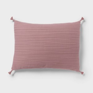 Give new life to a pillow with the Double Cloth Quilt Sham from Threshold™. Boasting a cotton-polyester blend shell (polyester fill), this decorative pillow sham is adorned with a textured pattern in jacquard finish, along with tasseled corners for added appeal. It also has a zipper closure to lend the perfect fit and make it easy to remove for convenient cleaning. Great for adding some texture and softness to the top of your bed, you'll love the easy refresh this pillow sham brings to your home decor.
