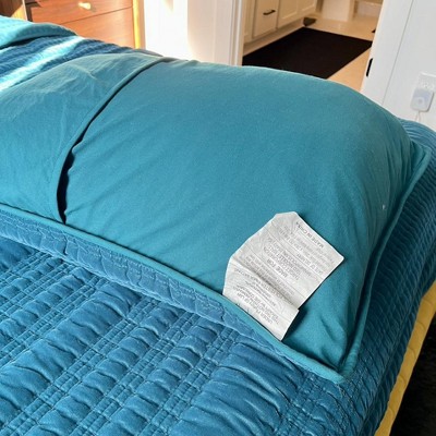 Complete your peaceful sleeping quarters with this Lofty Velvet Quilt Sham from Threshold™. This velvet pillow sham is made with soft filling to create a cozy resting spot, and it showcases an allover quilted design in a versatile solid finish for a tastefully textured look. Plus, the inner envelope closure makes for easy insertion and removal of pillow inserts. Just wrap this velvet quilt sham around a cushy pillow and toss it on your bed to create a cozy vibe, or pair it with your choice of decorative pillows to create a distinctive personal decor style.