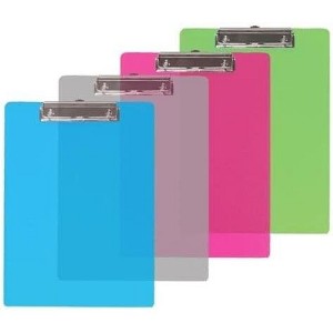Gone are the days of a boring old black clipboard. Brighten up your workload with this set of 6 Semi-Transparent Plastic Clipboards in 4 assorted colors. The clipboards are standard sized with a low profile clip and retractable hanging hook.